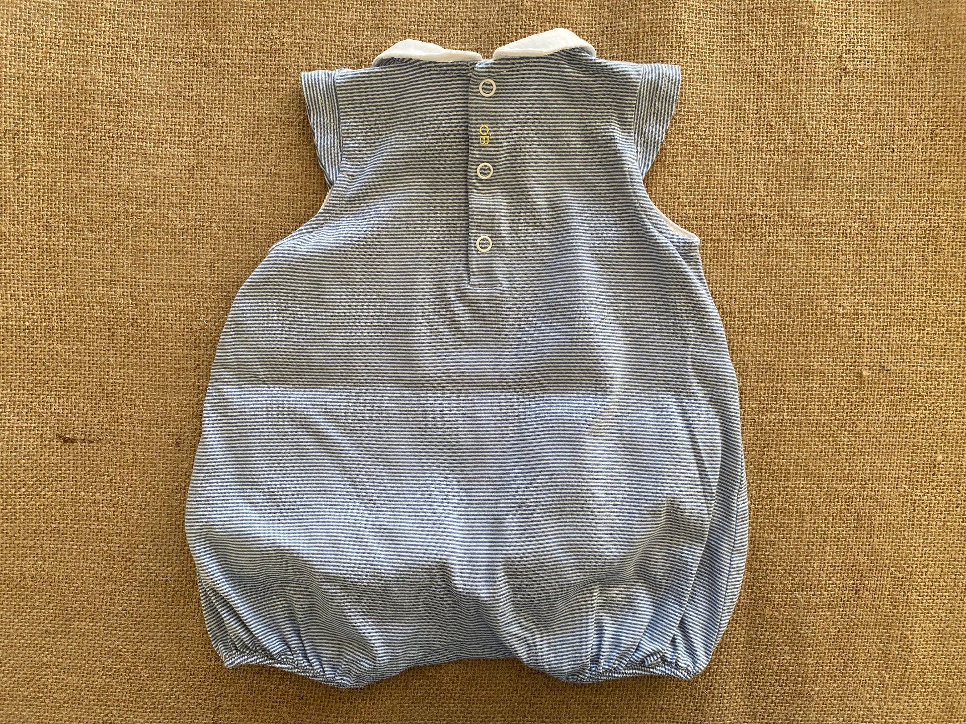 Barboteuse rayée bleu et blanc motif papillon jaune Okaïdi Obaïbi 6 mois d'occasion