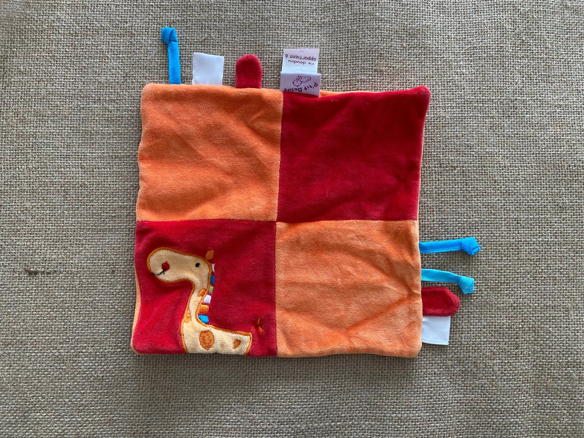 1450114-doudou-plat-girafe-orange-rouge-p-tit-basile-d-occasion