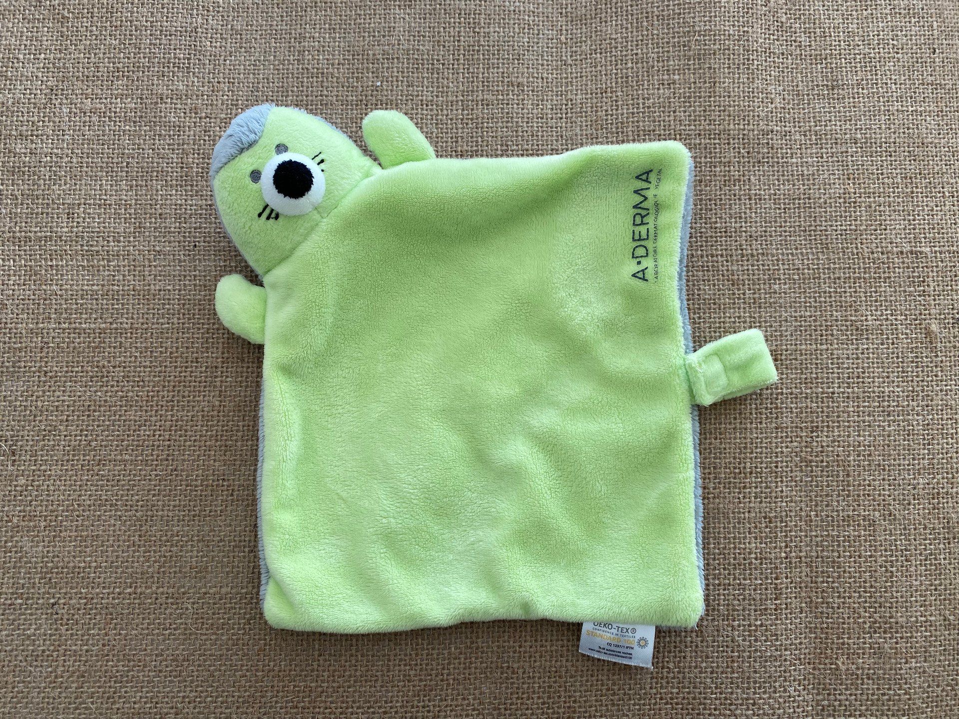 Doudou plat hérisson phoque vert gris A.DERMA Oeko-texs d'occasion