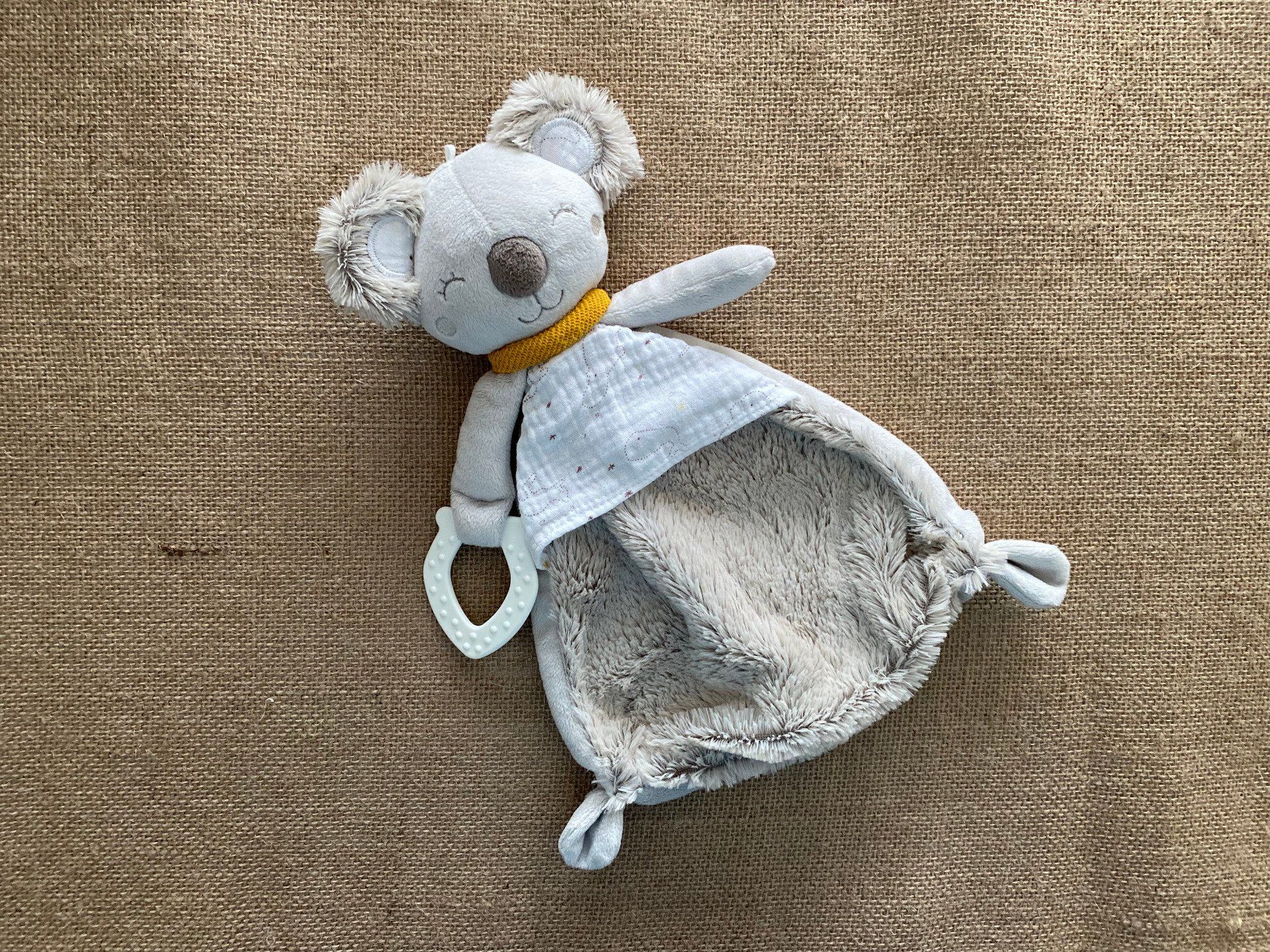 Doudou plat koala gris anneau de dentition Topomini d'occasion