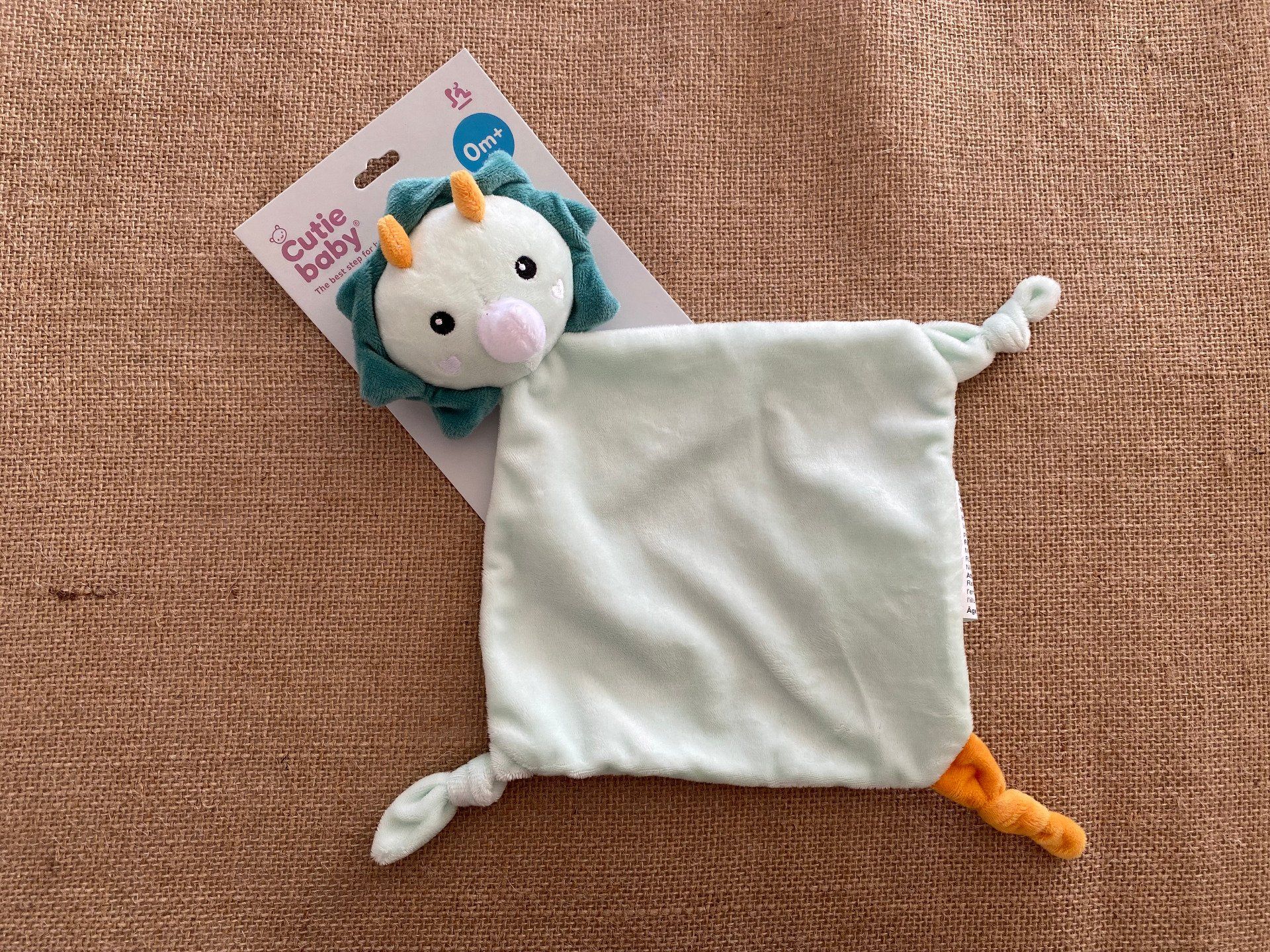 Doudou plat lion rhinoceros dinosaure vert Cutie Baby - Article Neuf