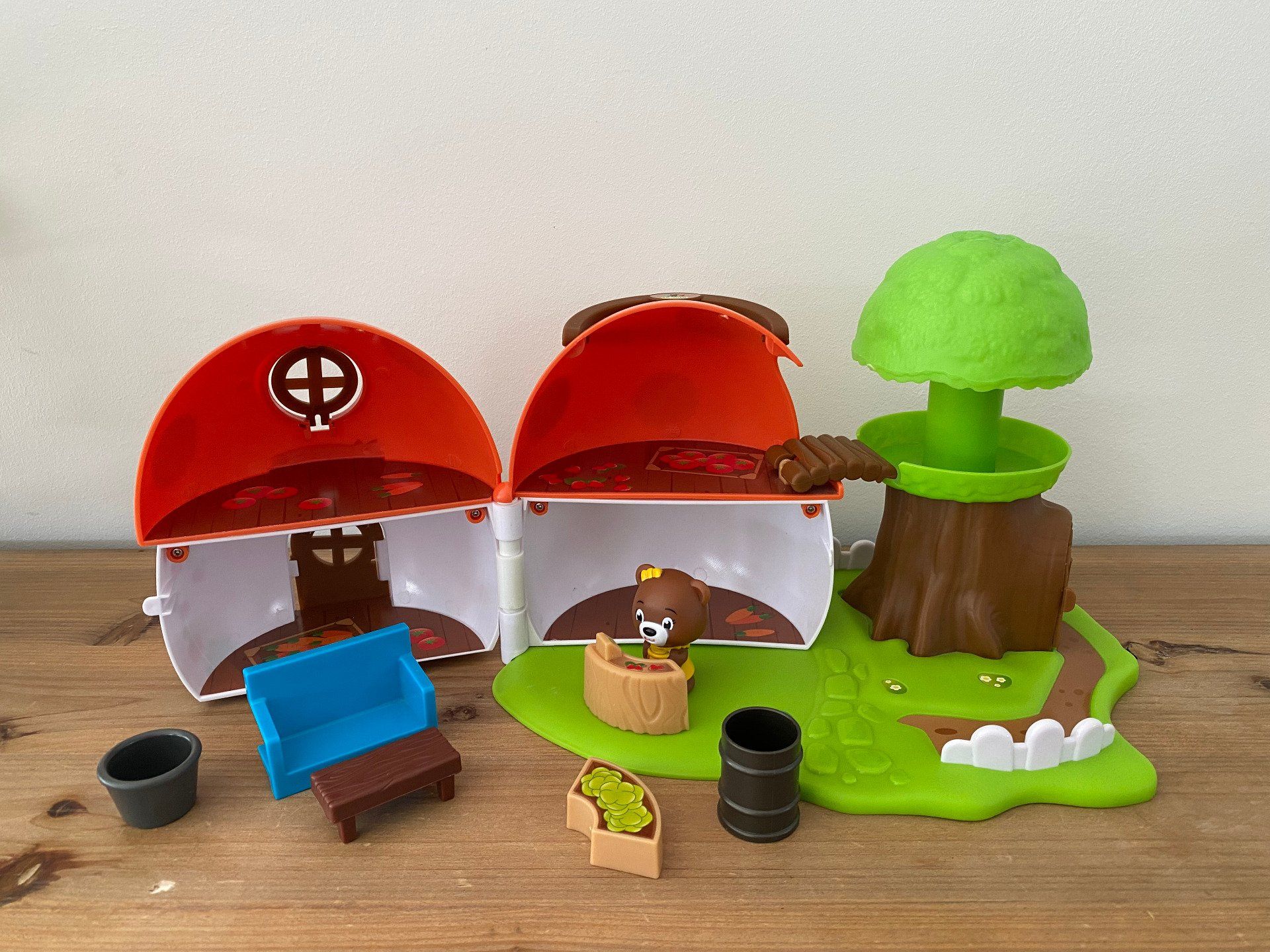 En l’ouvrant, tu découvres une jolie boutique sur deux étages, idéale pour inventer des histoires et imiter la vie du quotidien.