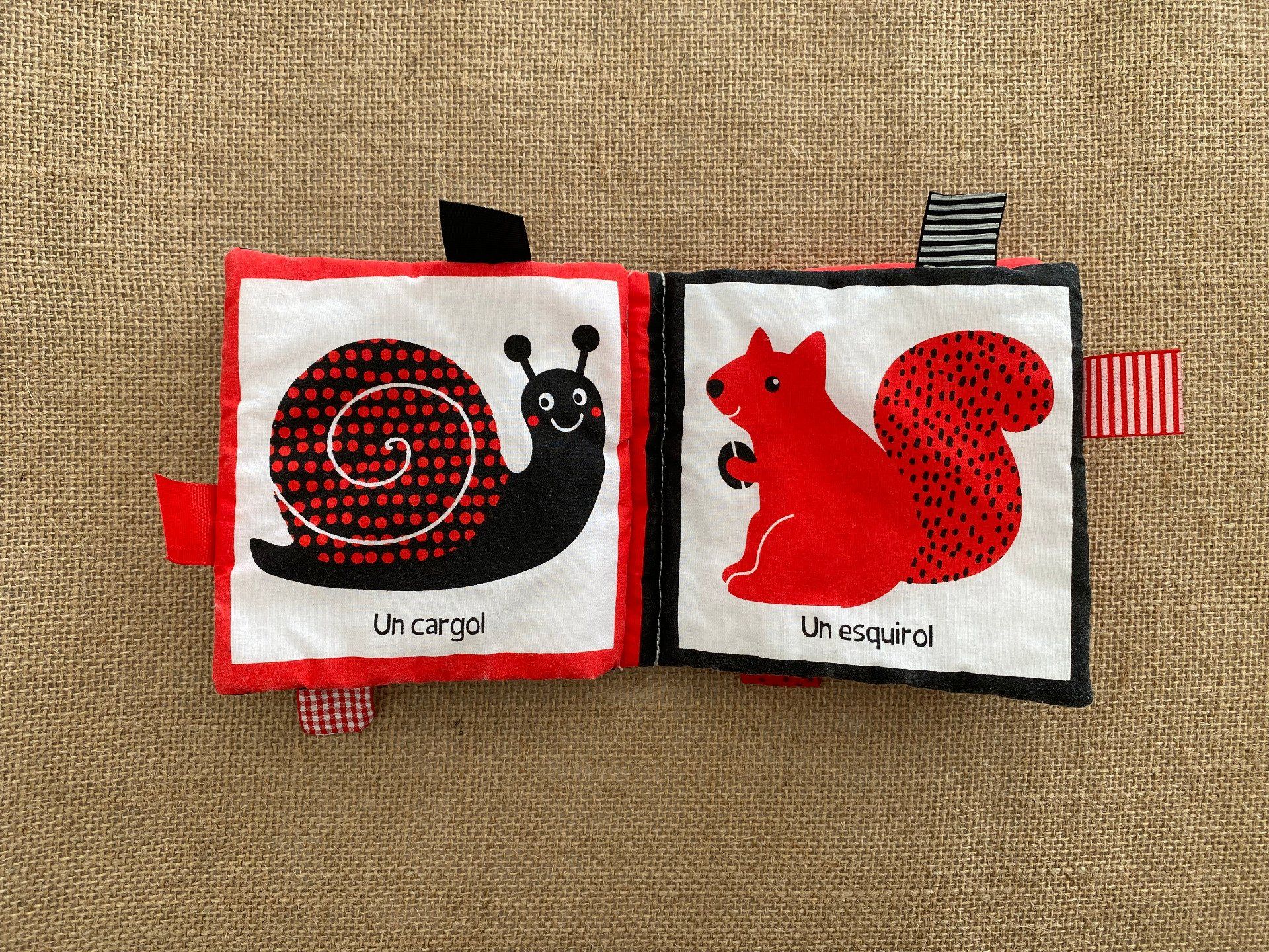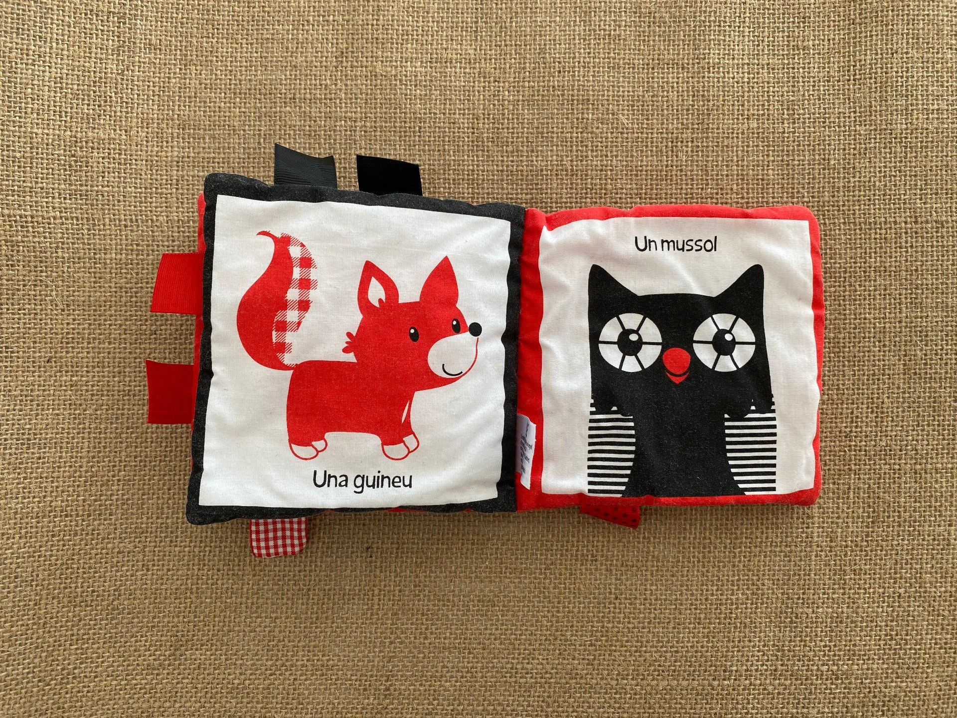 Livre en tissu bébé rouge noir blanc Combel Editorial espagnol occasion