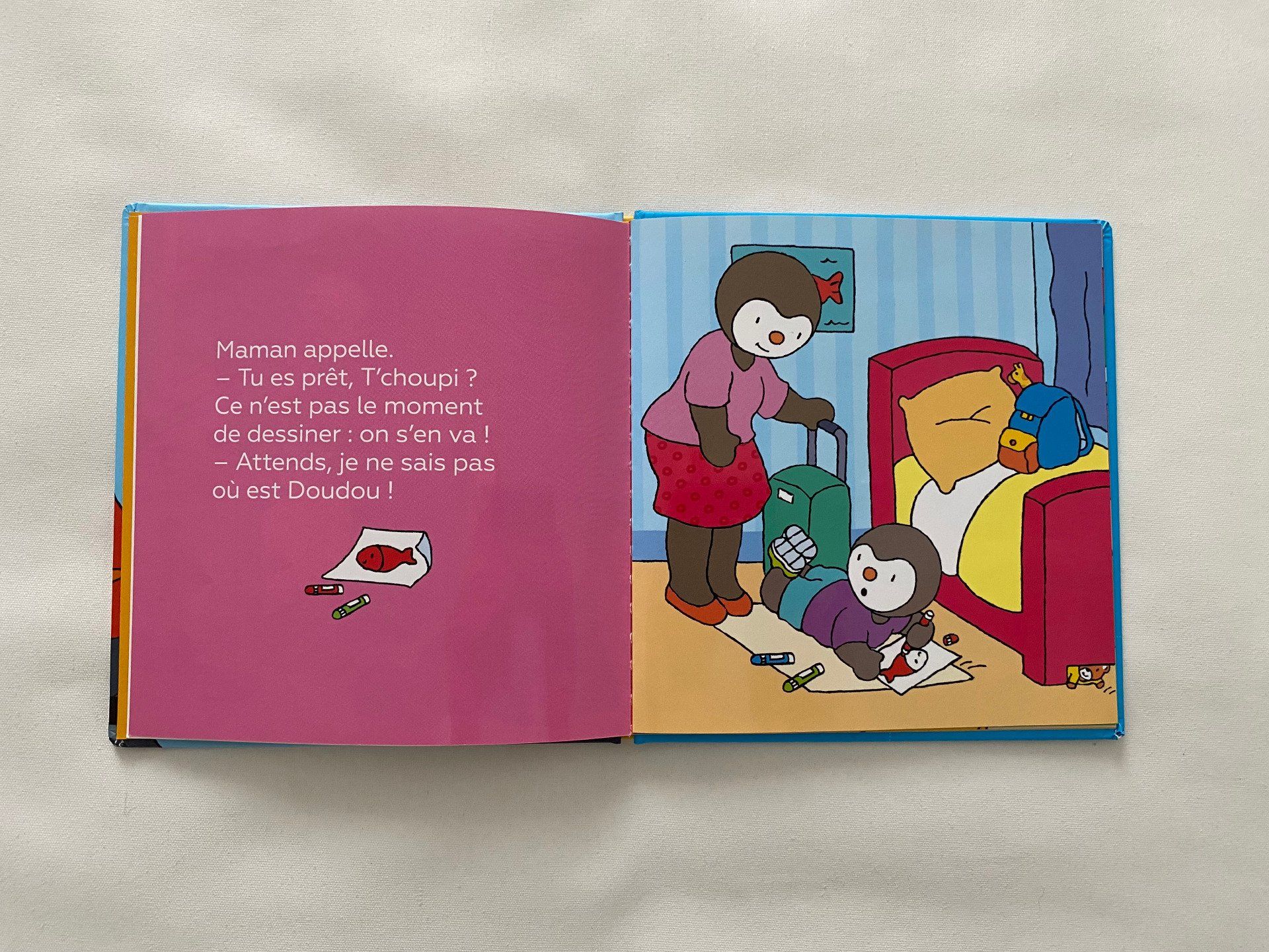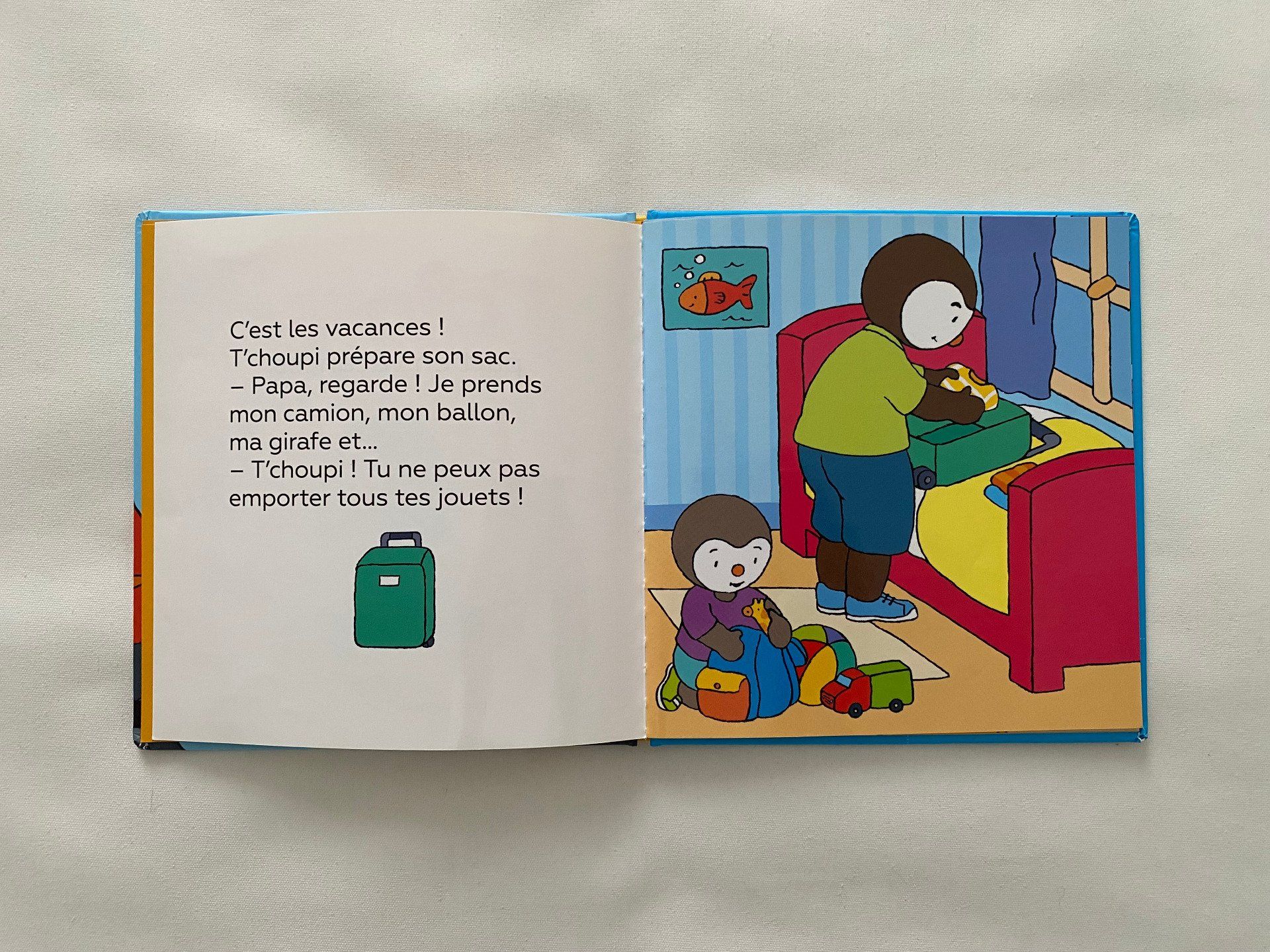 Ça y est, c'est le grand jour ! T'choupi est tout excité à l'idée de partir en vacances.