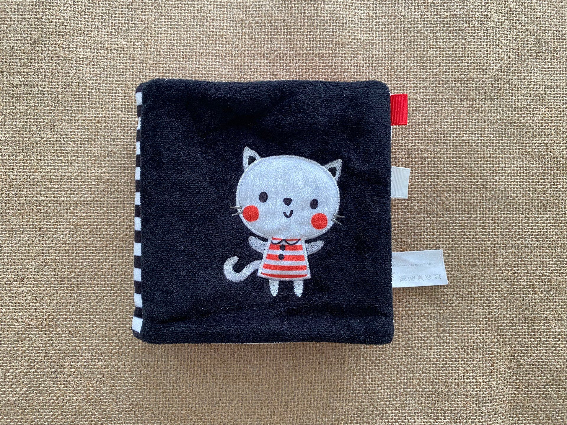 Livre tissu Mon tout-doux en noir et blanc Petit chat Tam Tam - Article Neuf