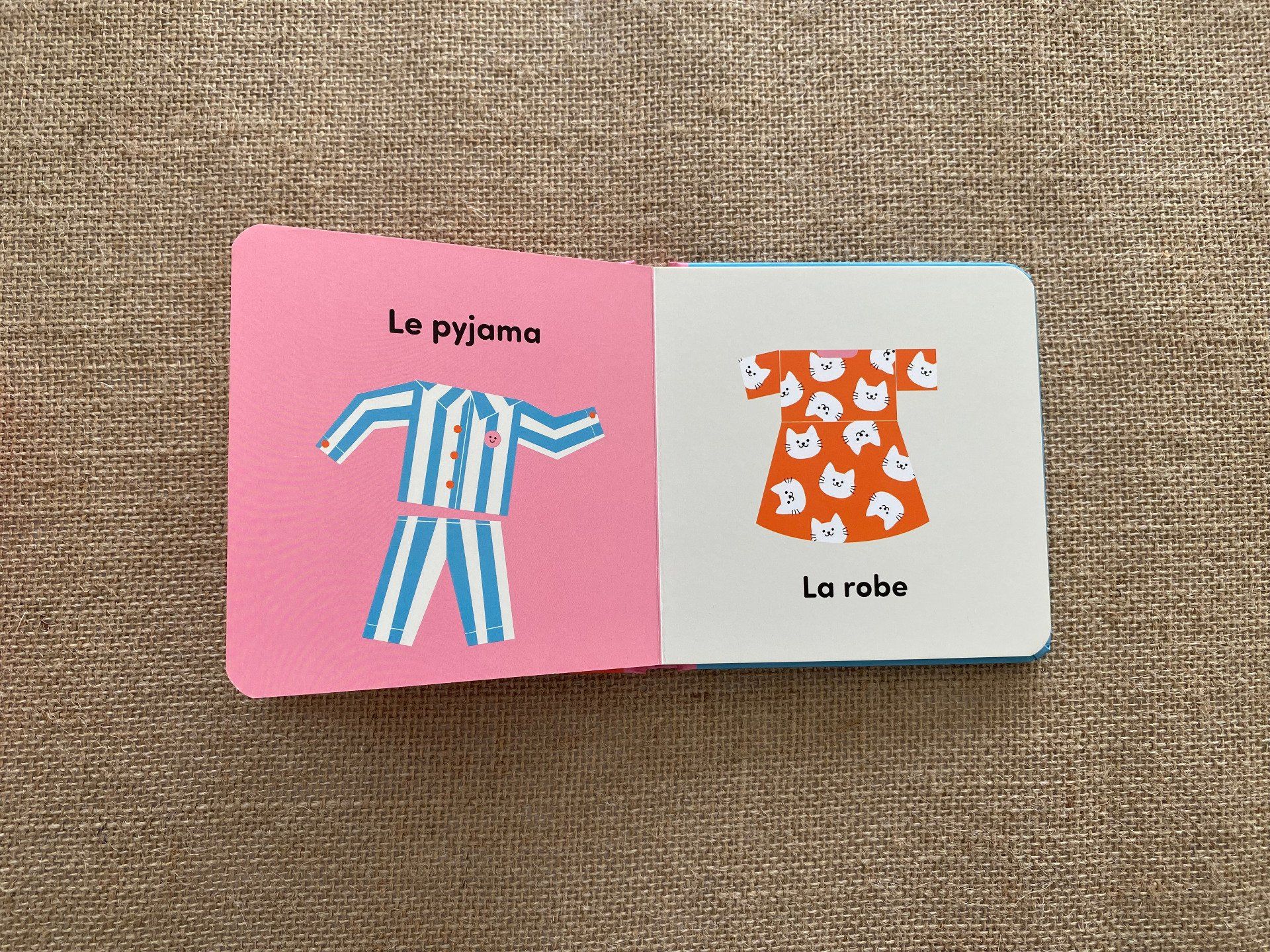Deux imagiers ludiques pour enrichir le vocabulaire de bébé en découvrant les habits et la maison à travers des illustrations simples et colorées.