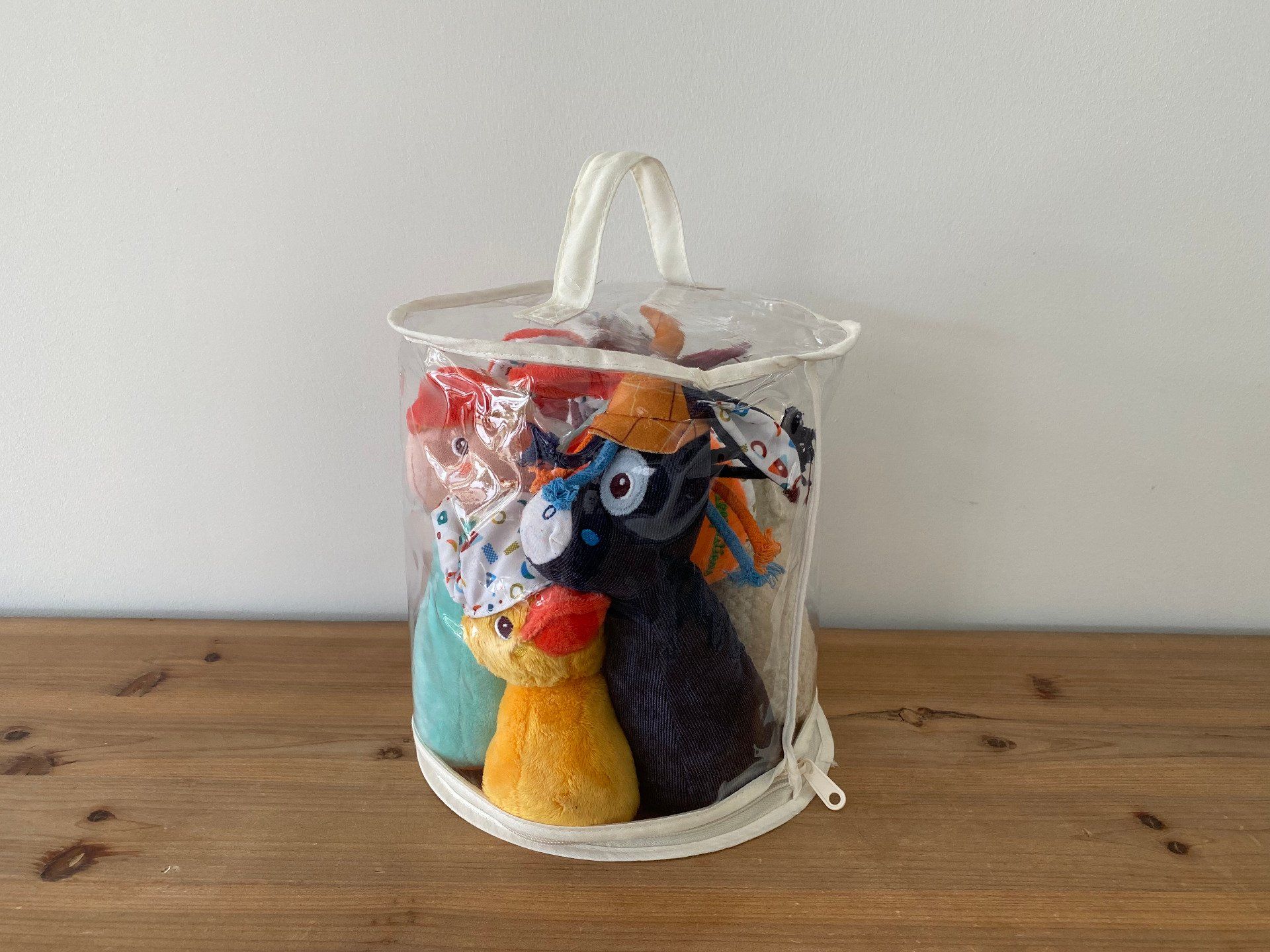 Animaux en tissu doux avec détails amusants : oreilles, cornes, museau rigolo, langue qui dépasse