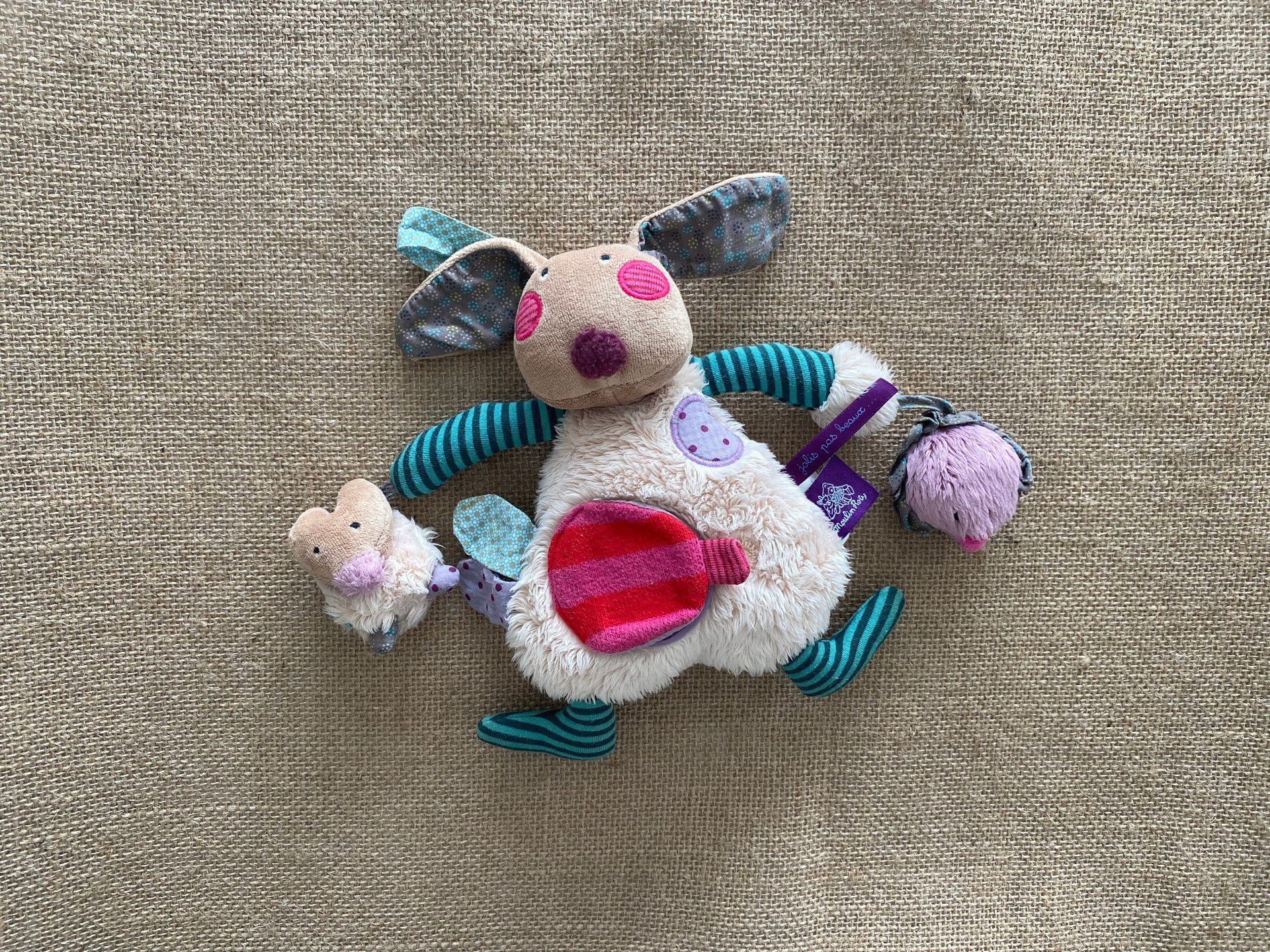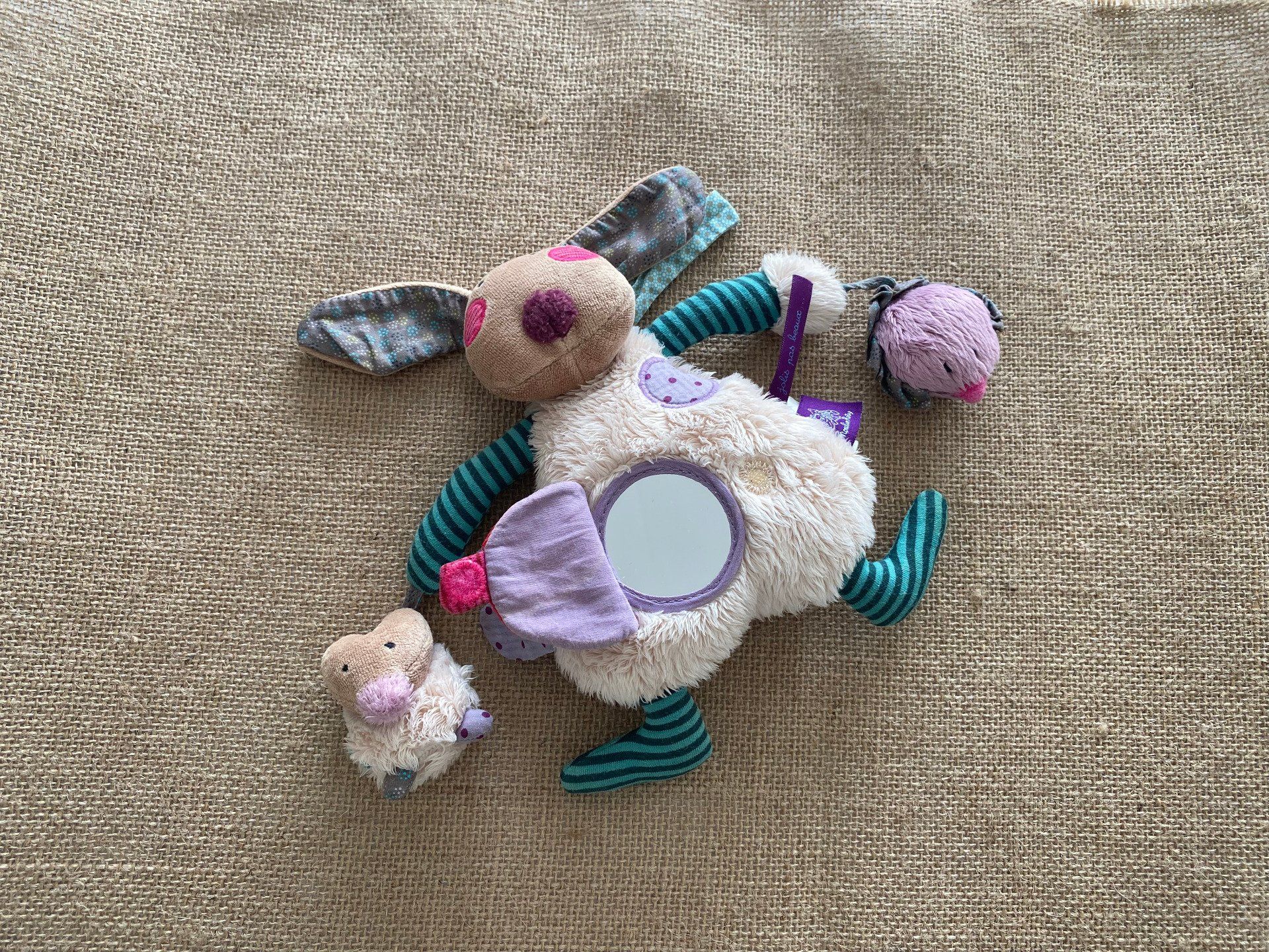 Peluche lapin d'activités Les jolis pas beaux ...Moulin Roty d'occasion