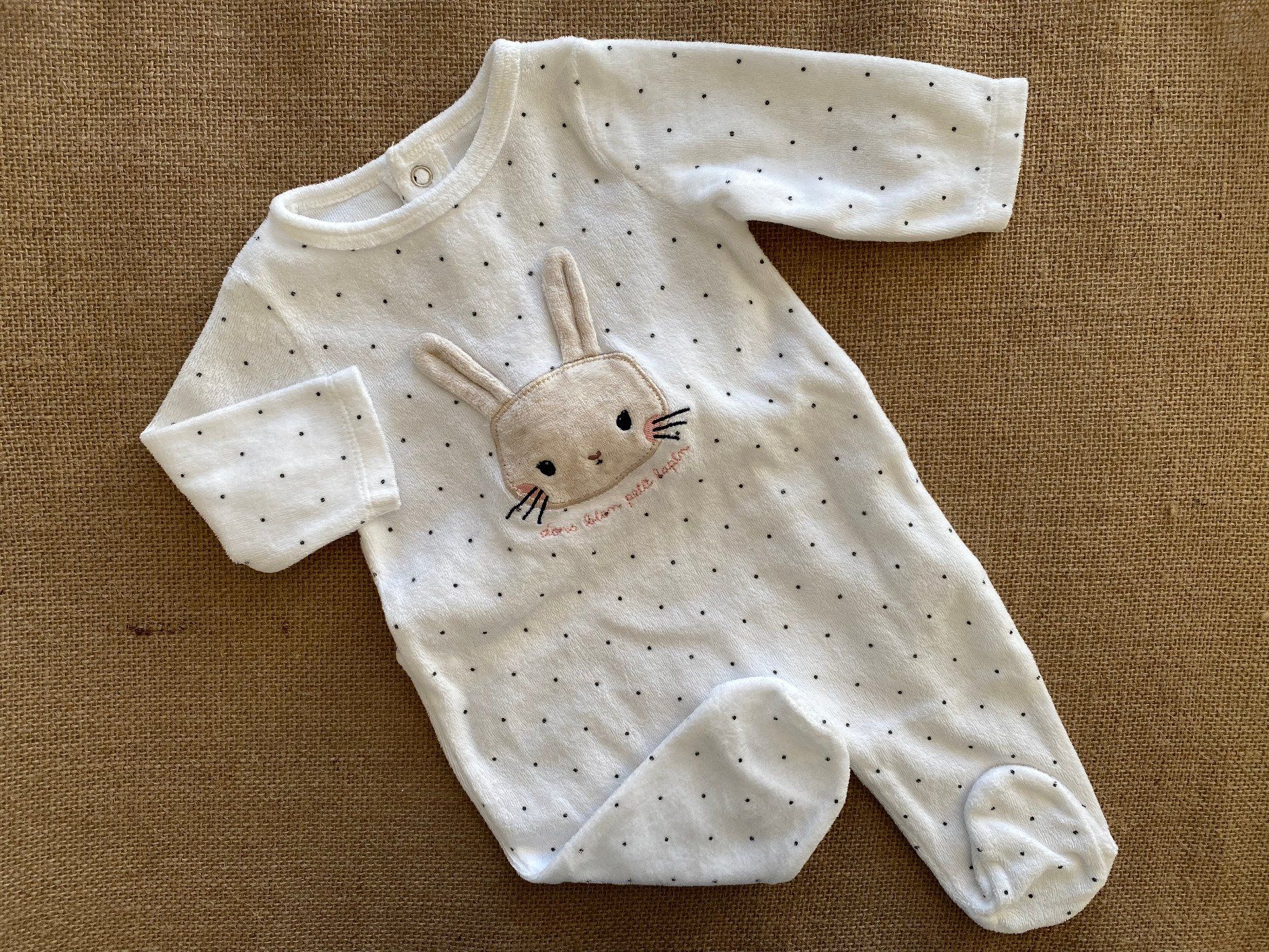 Pyjama bébé Gémo 3 mois blanc à pois motif lapin