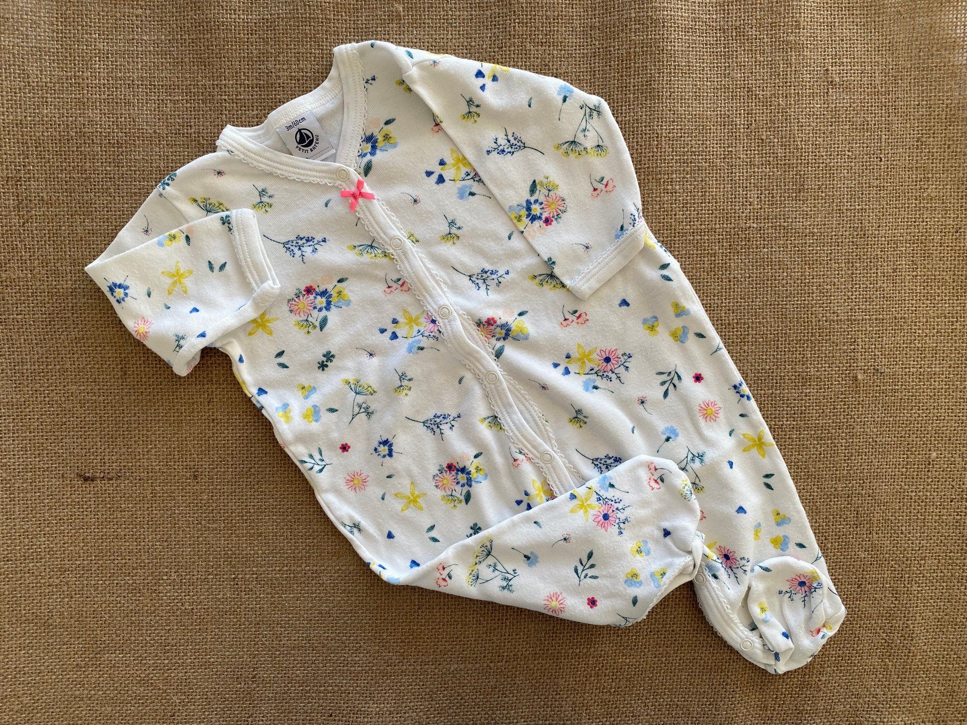 🌸 Pyjama bébé Petit Bateau 3 mois blanc motifs fleurs été d'occasion