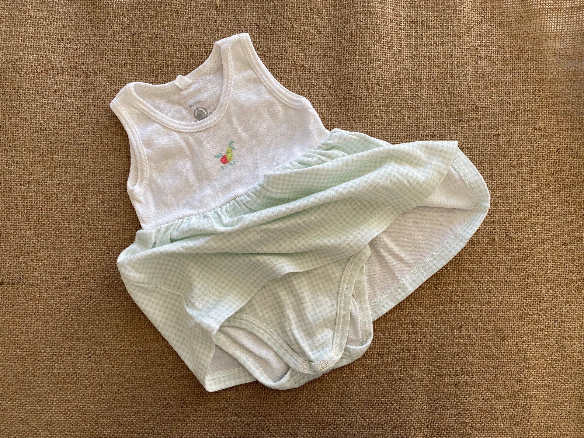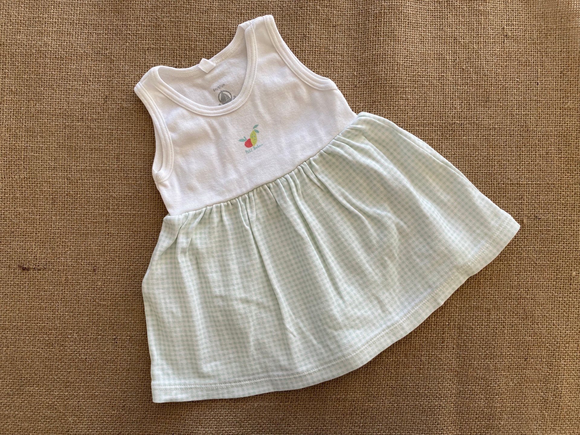 💚 Robe bébé Petit Bateau 6 mois blanc à carreaux verts avec body intégré