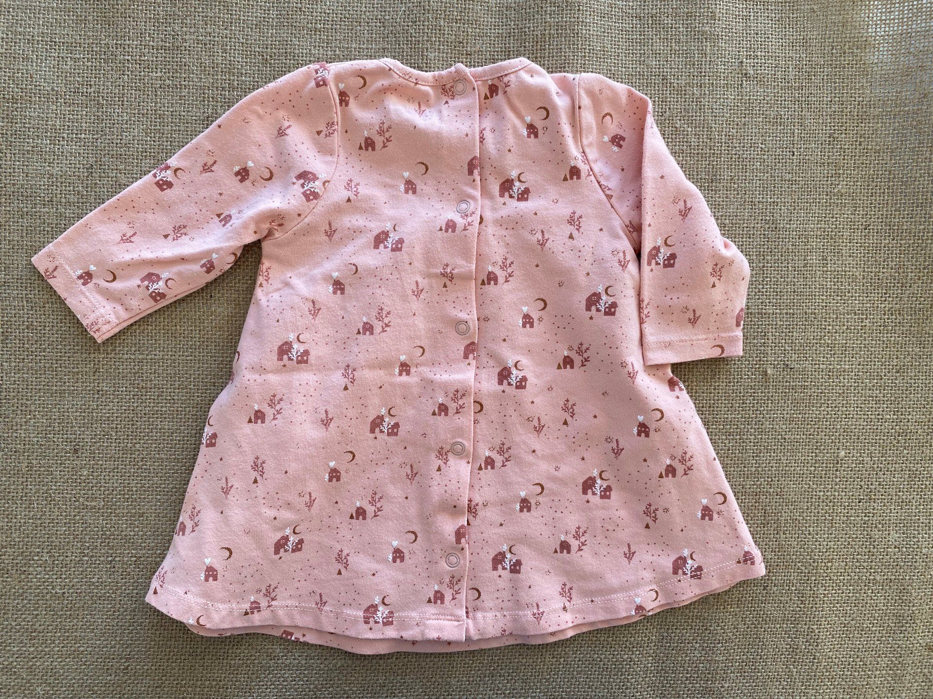 🏡 Robe bébé Vertbaudet 3 mois rose motifs maison manches longues